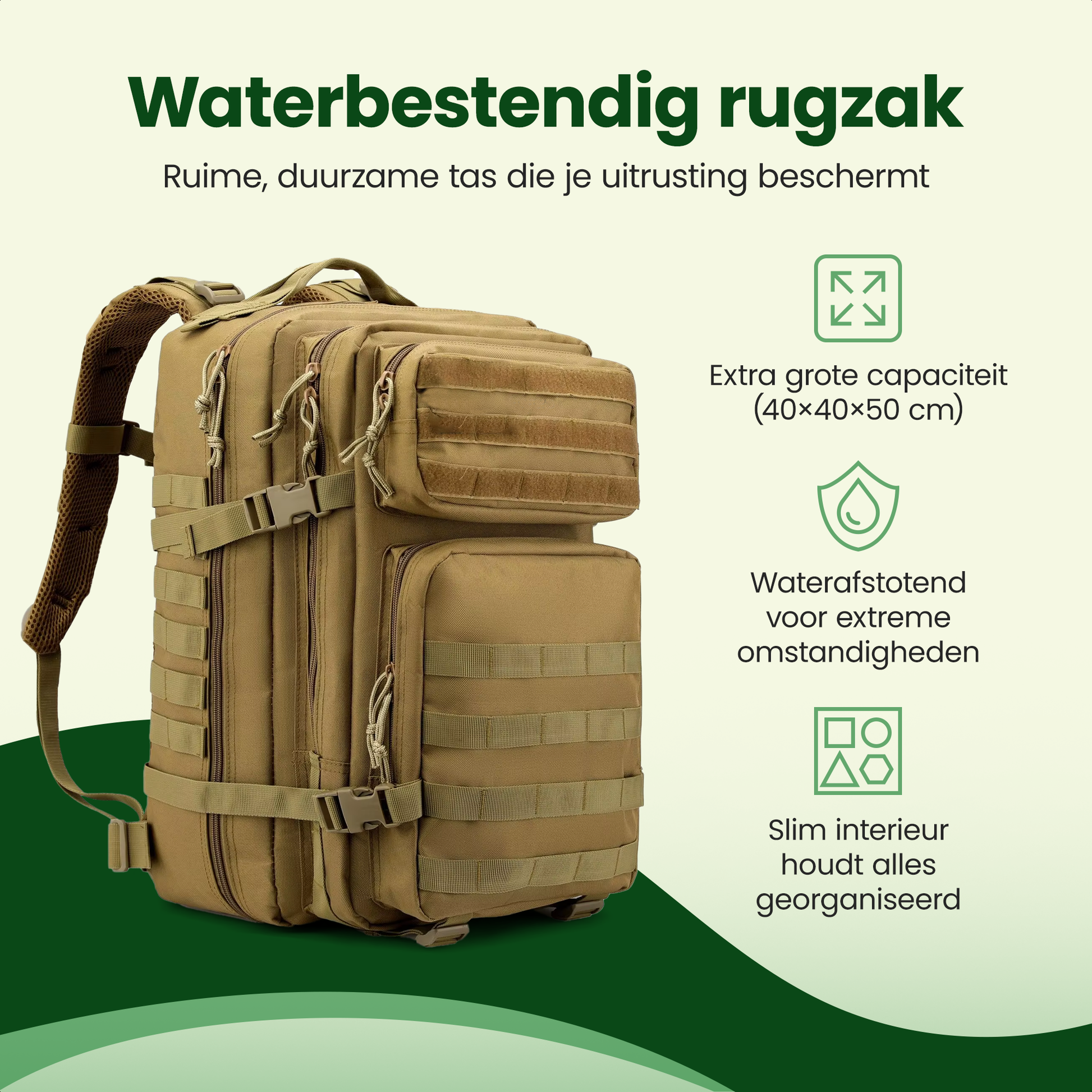 Waterbestendige rugzak – grote capaciteit, duurzaam en georganiseerd ingedeeld.